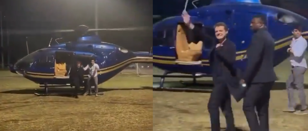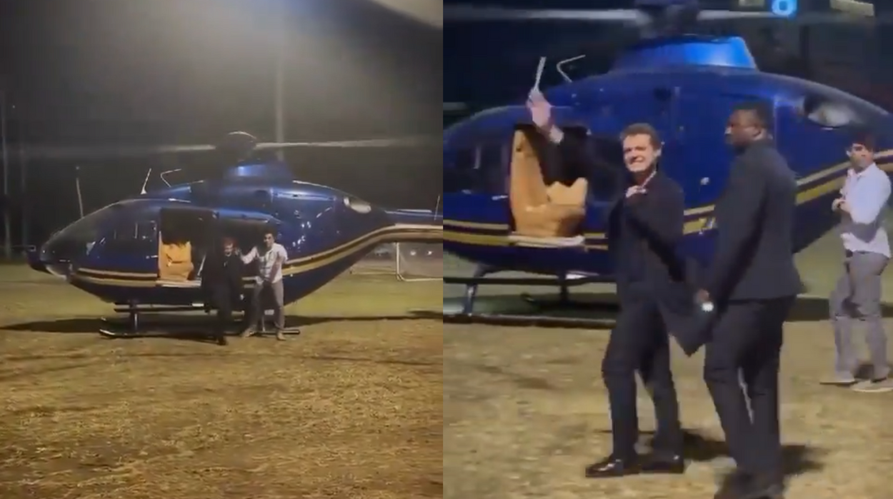 Luis Miguel se baja de helicóptero para saludar