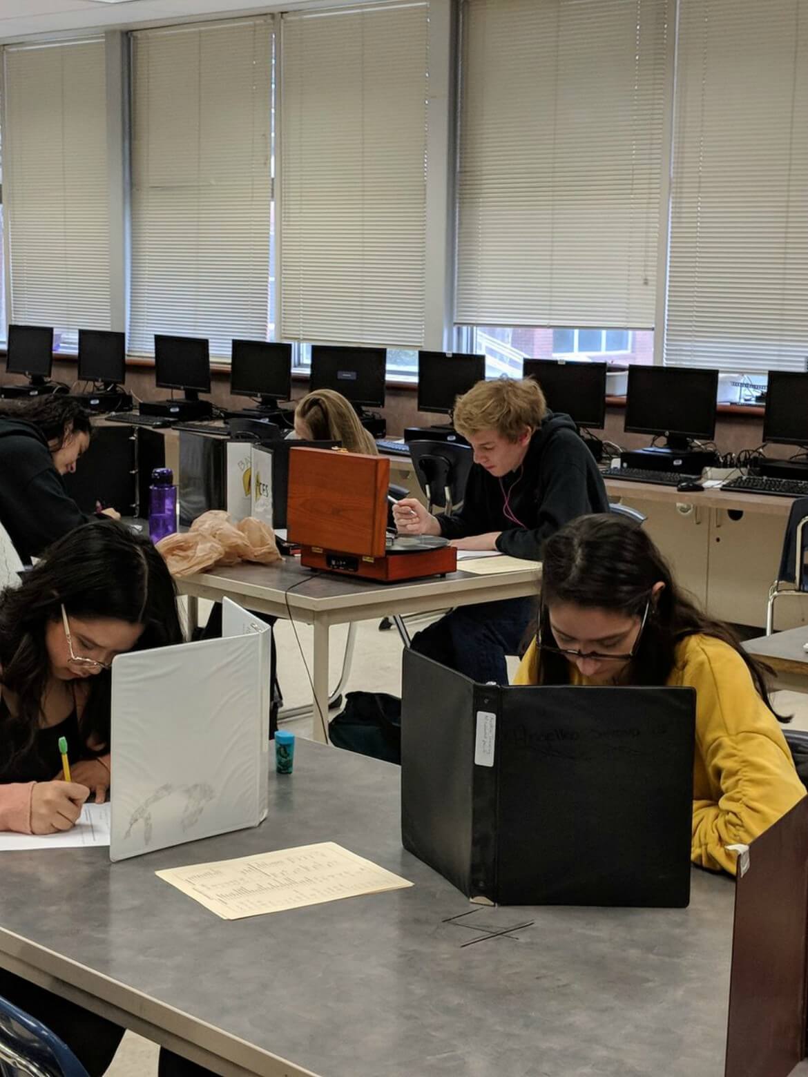 This student brought in a record player and is bumping Kanye in his headphones right now... pic.twitter.com/p57iMIal7D