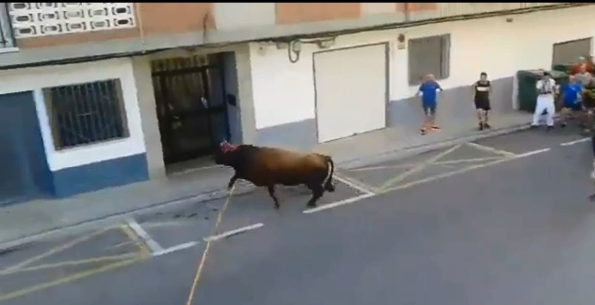 El momento quedó captado en un video, el cual muestra a varias personas correr para alejarse del toro, cuando este decide embestir a quienes intentaban refugiarse en un pórtico.