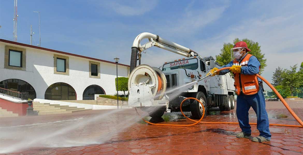 El director del Sistema de Agua Potable, Alcantarillado y Saneamiento, SAPASA, Alexander Estrada Rosales explicó que se está sanitizando con equipos vactors que lanzan una mezcla de cloro a presión.