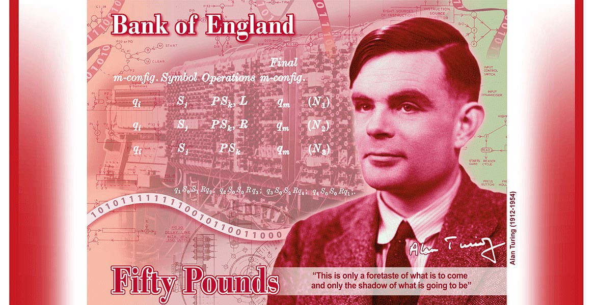 Las características de este nuevo billete de 50 libras es que es fabricado en polímero, mostrará el rostro de Alan Turing e incluirá una fórmula del matemático y esta frase de 1949: “Esto es sólo un anticipo de lo que está por venir y sólo la sombra de lo que va a ser”.