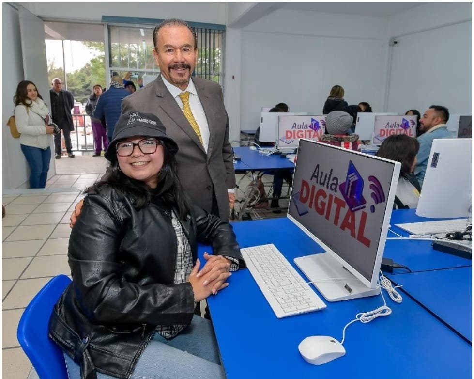Atizapán de Zaragoza, Mex.- El alcalde Pedro Rodríguez Villegas, entregó cuatro Aulas Digitales con 20 computadoras en cada una en las escuelas UPN Unidad 52 Atizapán, la Escuela Primaria Profesor José Vizcaíno Pérez, la Secundaria Patria y Libertad y Ford Número 87, y aseguró que continuarán en 2024 los beneficios educativos.