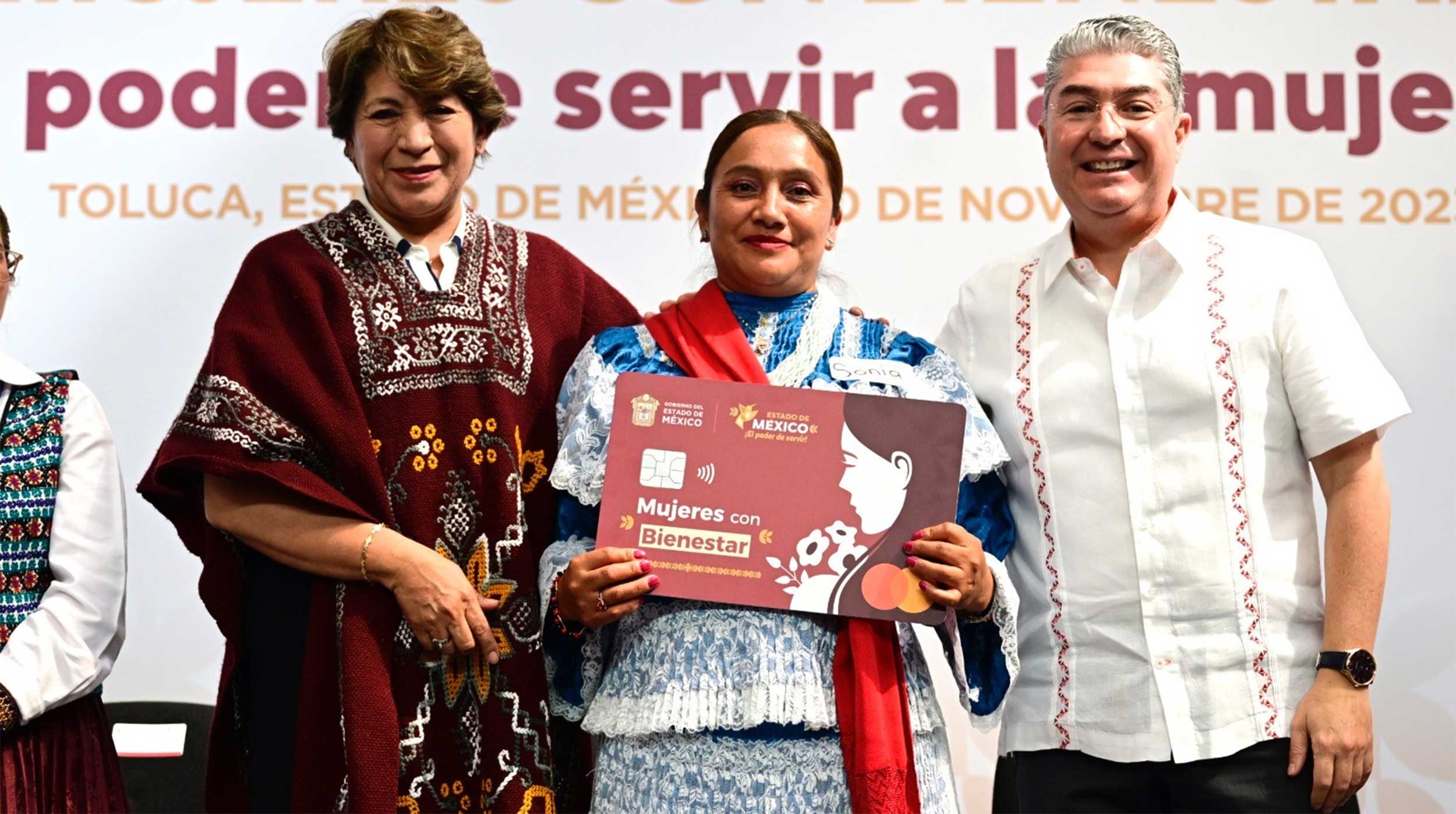 La maestra Delfina Gómez entregó de manera simbólica a 10 beneficiarias la nueva Tarjeta “Mujeres con Bienestar”, y destacó que, con la puesta en operación de este programa integral se cumple la promesa de caminar hacia la igualdad y el empoderamiento de las mexiquenses, demostrando que El Poder de Servir permite abrir puertas y dar solución al abandono que sufrió este sector por casi 100 años.