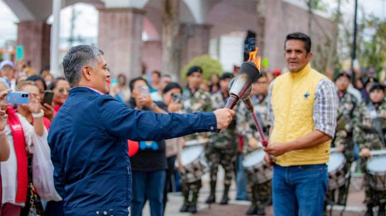 De manos de la expresidenta Nallily González García, el alcalde de Coacalco recibió el Fuego de la Libertad que avivó la llama del pebetero ubicado en la fachada del pórtico de la presidencia municipal; mismo que permanecerá encendido hasta finalizado el mes patrio.