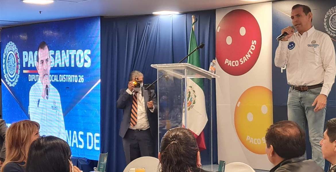 Cuautitlán Izcalli.- Acompañado de su familia, sus amigos, la candidata electa a la presidencia municipal izcallense Karla Fiesco y algunos compañeros legisladores, el diputado local panista Francisco Santos Arreola presentó su plan de trabajo y anunció que tendrá tres oficinas de enlace que mantendrá de su bolsa, porque donará su sueldo en apoyo a la gente de su distrito, “porque no vengo por dinero”.