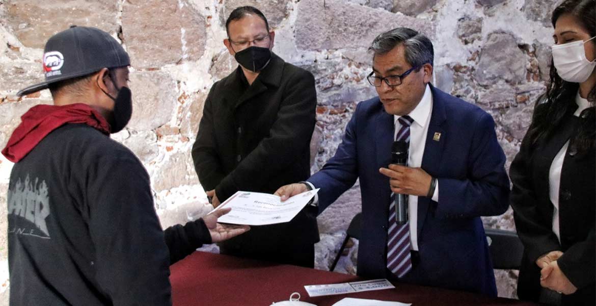 Finalmente, el alcalde en compañía del secretario del Ayuntamiento, Axayácatl Melgarejo Carranza; la directora de Desarrollo Social, Graciela Altamirano Pérez y el director de Cultura, Nieves Amílcar Velasco Vaca entregó reconocimiento a los 17 participantes que fueron parte importante para rescatar y embellecer los espacios de Cuautitlán Izcalli.