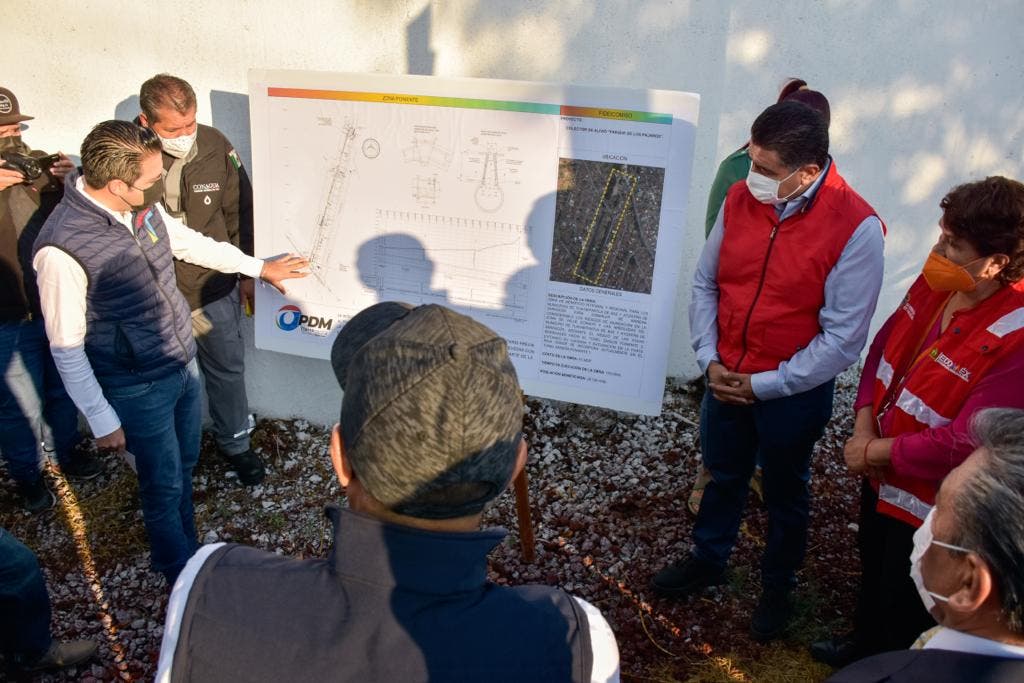 En esta gira de trabajo, el presidente municipal presentó el proyecto del colector de alivio Parque de los Pájaros, obra que contribuirá a disminuir los riesgos de inundación en Valle Dorado y Arboledas, en el municipio de Atizapán, mediante el desvío de las aguas residuales hacia el Túnel Emisor Poniente II (TEP), evitando su llegada y saturación en la parte baja donde se incorpora actualmente el TEP I.