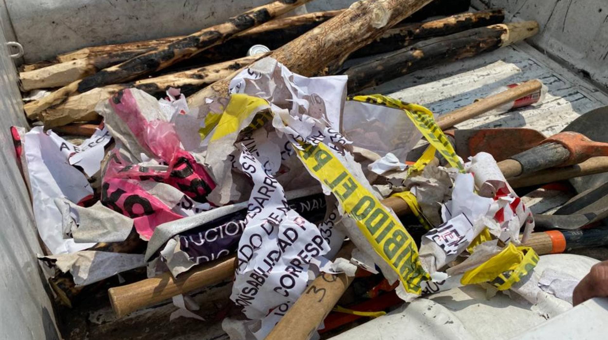 Este jueves 18 de mayo, personal de la dependencia instaló postes de aproximadamente un metro de altura para colocar nuevamente los sellos de suspensión de actividades y una cinta amarilla que prohíbe el paso en el perímetro del terreno.
