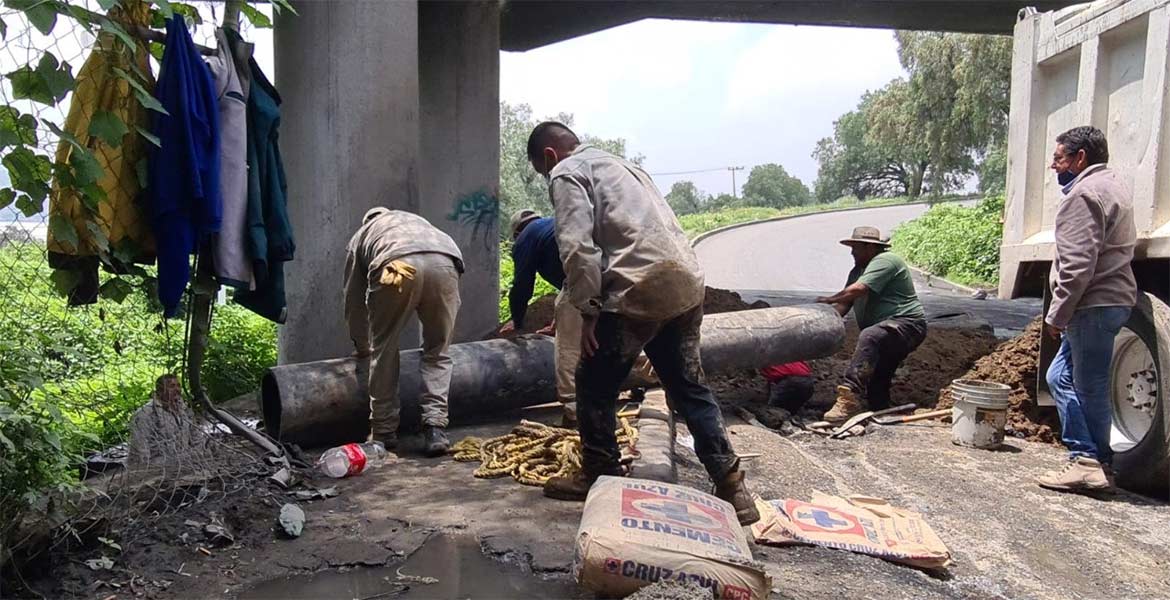 Fueron utilizados 6.5 metros de tubería de acero de 16 pulgadas de diámetro y 3.5 metros de “struck pack” de la misma dimensión, para un total de 10 metros de línea unidos con concreto. Finalmente fue construida una caja receptora de agua pluvial con rejilla, que permitirá garantizar el desfogue en esta zona, conducir el agua hacia el área verde al costado de la avenida y abatir los problemas de encharcamientos que afectan a los automovilistas y unidades del transporte público que utilizan este entronque.