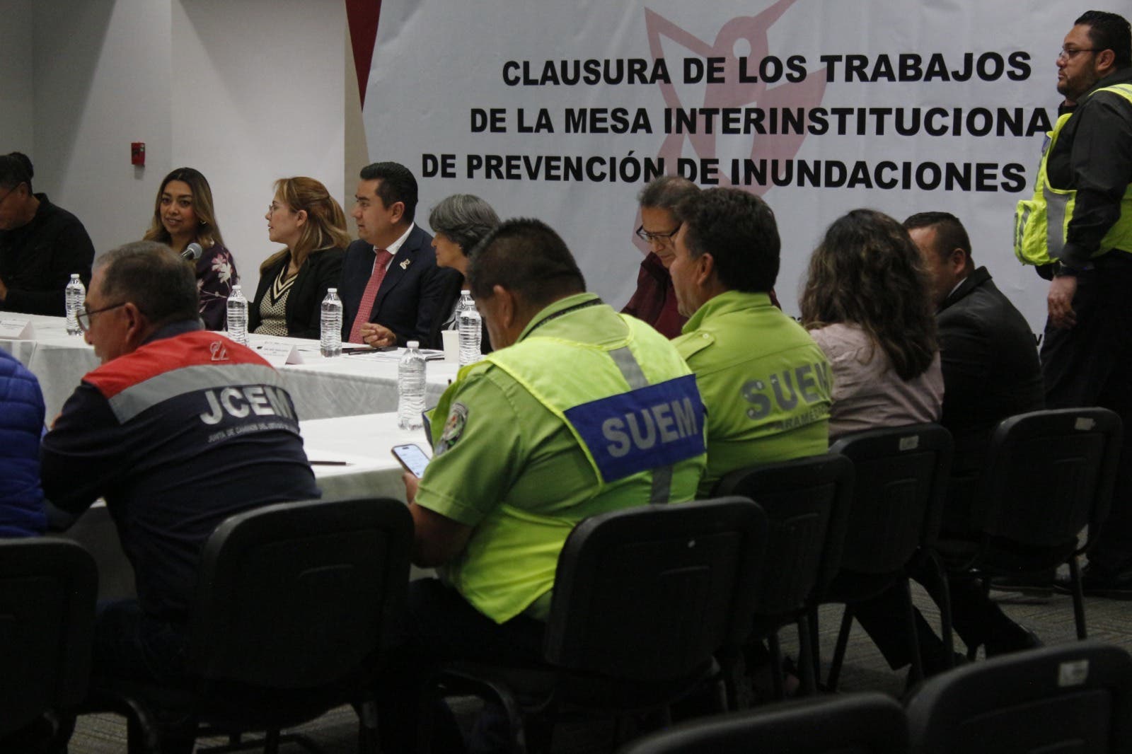 Al término de la 11ª Mesa Interinstitucional de Prevención de Inundaciones 2024, autoridades de los Servicios de Urgencias del Estado de México (SUEM) a nombre de la titular de salud reconocieron el esfuerzo que realizaron este año las y los profesionales de los servicios médicos y paramédicos.