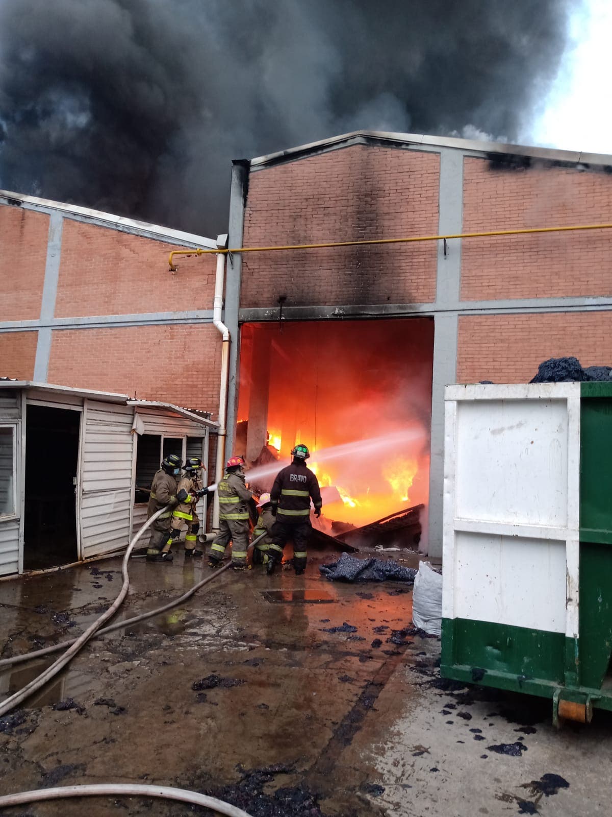 Los vulcanos acudieron a la nave industrial número 3C para controlar las llamas en la fábrica de colchones con el apoyo de dos motobombas, dos camiones cisternas con capacidad de 10 mil litros y cuatro unidades de rescate.