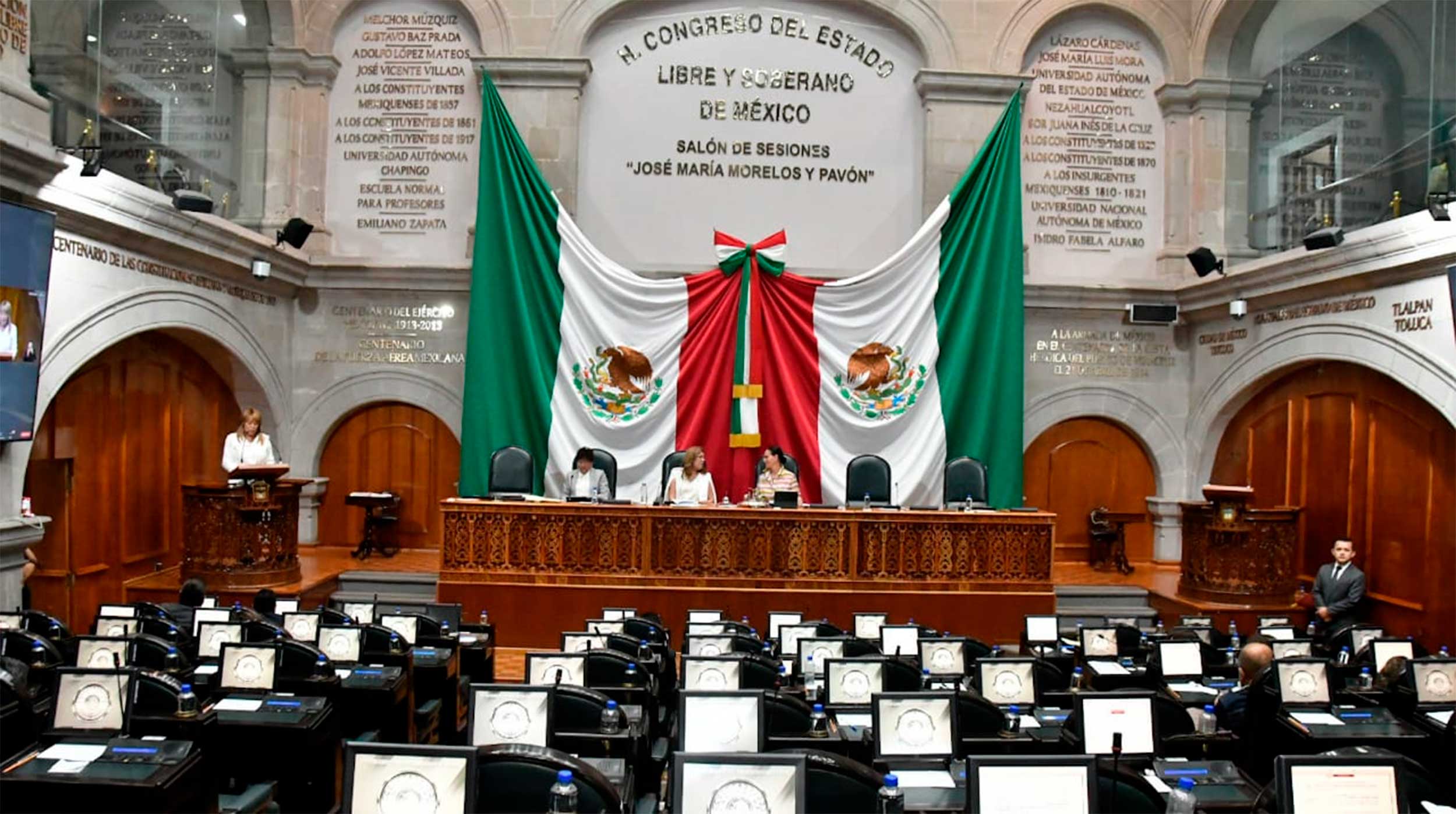 En cumplimiento de la legislación electoral local, el Congreso del Estado de México determinó que del 25 de abril al 1º de junio las autoridades estatales y municipales, así como las y los legisladores locales, se abstendrán de establecer y operar programas de apoyo social o comunitario que impliquen la entrega a la población de materiales, alimentos o cualquier elemento que forme parte de sus programas asistenciales o de promoción y desarrollo social.