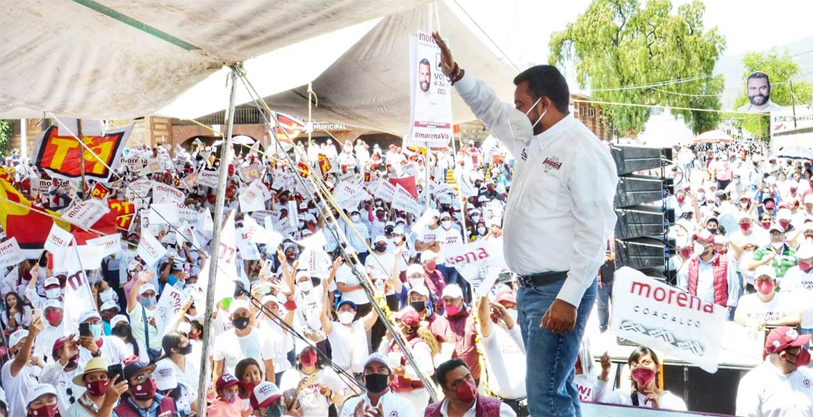 Coacalco.- "Vamos a terminar de sepultar, de una vez por todas, a quienes quieren regresar a seguir saqueando nuestro municipio, a quienes quieren regresar a servirse con la cuchara grande como siempre lo han hecho, a quienes solo ven por el beneficio personal en cada una de sus acciones, a esos, en Coacalco ya no los queremos más", señaló el candidato a la presidencia municipal, de la coalición Juntos haremos Historia Darwin Eslava, durante su cierre de campaña en la explanada municipal.