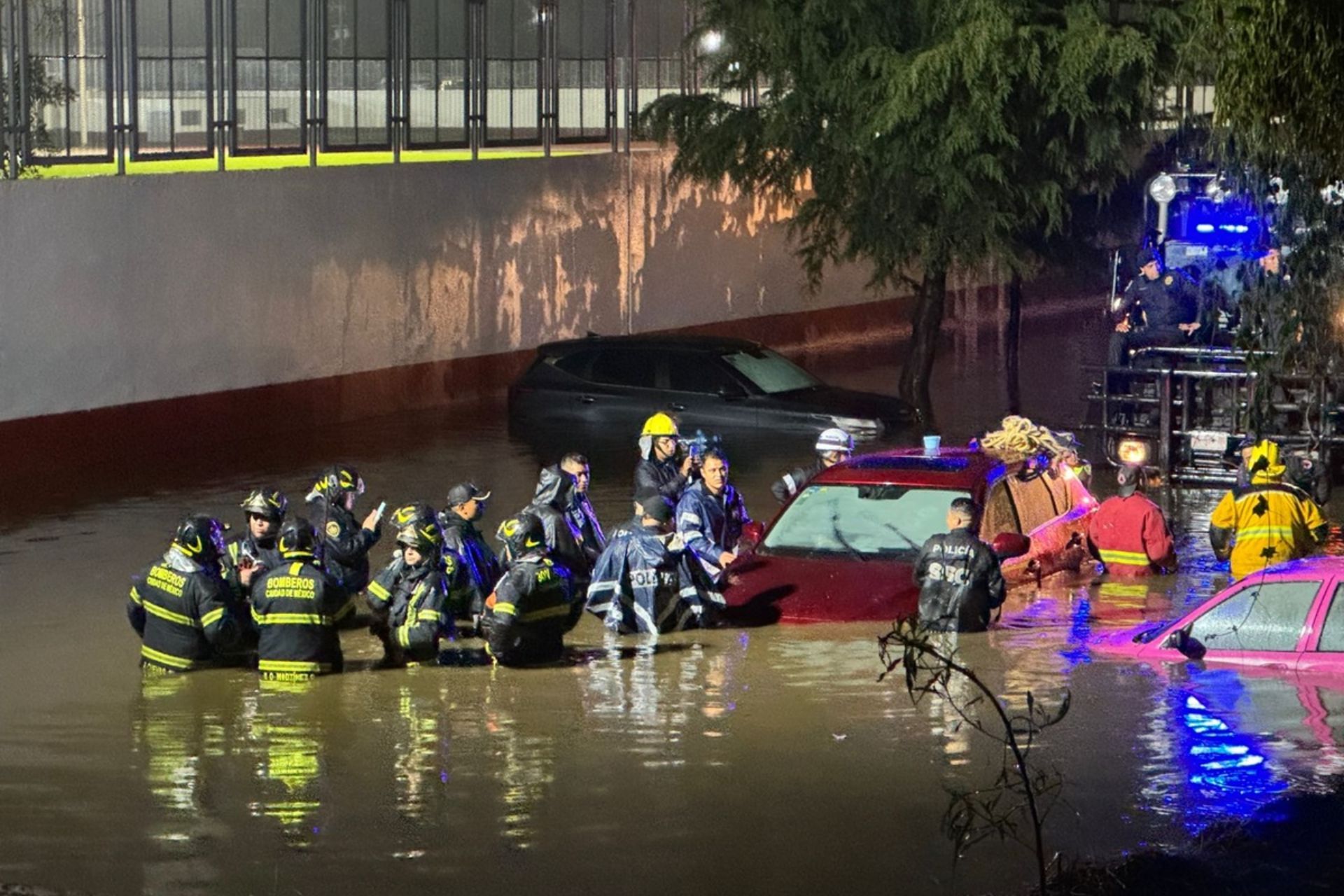 Ciudad de México. – Tras las fuertes lluvias durante la tarde noche del domingo 6 de octubre, autos quedaron inundados en el estacionamiento de la Feria del Mole, en San Pedro Actopan, en la alcaldía Milpa Alta.