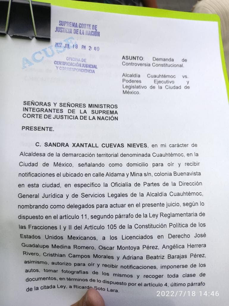 Ciudad de México.- La alcaldesa de Cuauhtémoc, Sandra Cuevas presentó controversia constitucional ante la Suprema Corte de Justicia de la Nación por considerar que la publicación de la Ley de Publicidad Exterior de la Ciudad de México invade facultades exclusivas de las alcaldías determinadas en la Constitución de la Ciudad de México, derivado de la Constitución Política de los Estados Unidos Mexicanos y en particular de la Alcaldía Cuauhtémoc.