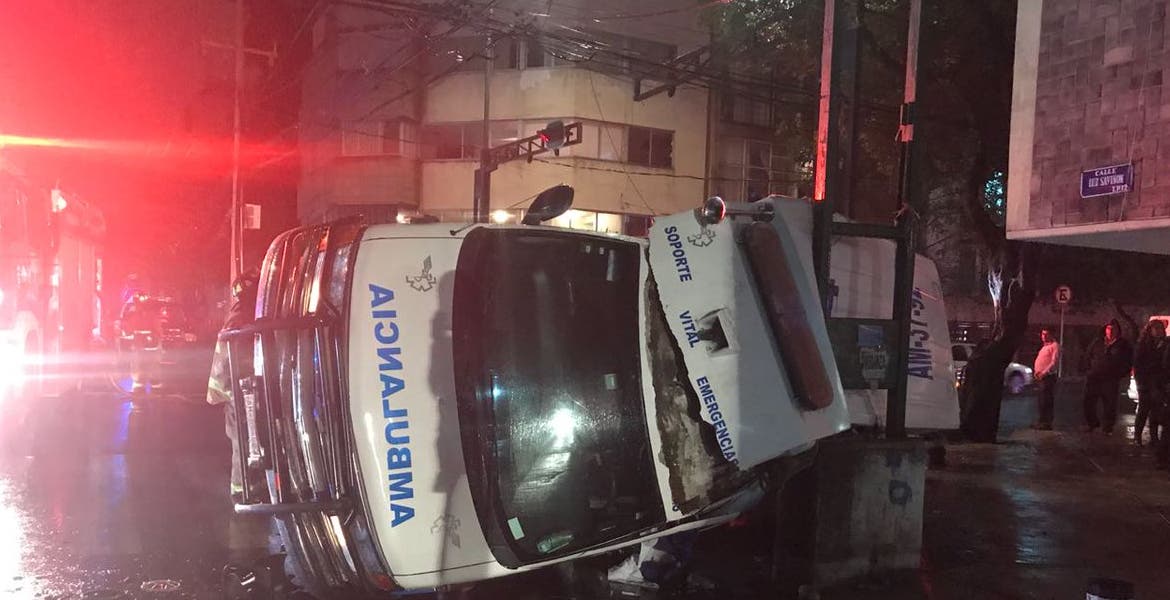 Ciudad de Mexico.- Una camioneta tipo SUV chocó y volcó una ambulancia en la Colonia del Valle, durante la madrugada de este miércoles entre las calles de Amores y Luz Saviñón, el pavimento mojado y la falta de precaución fueron las causas del incidente, informaron las autoridades de la capital.