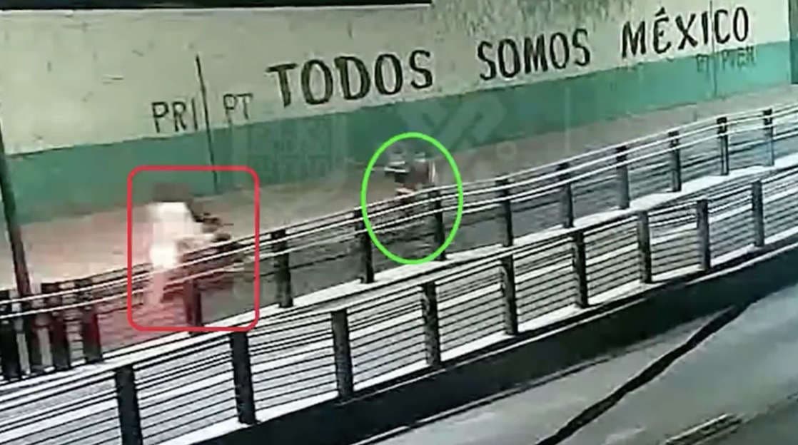 Ciudad de México.-  Cámaras del C5 de la capital captaron el momento en que dos asaltantes chocan con un repartidor de aplicación que iba en bici, para así, poder robarle su celular y salir huyendo.