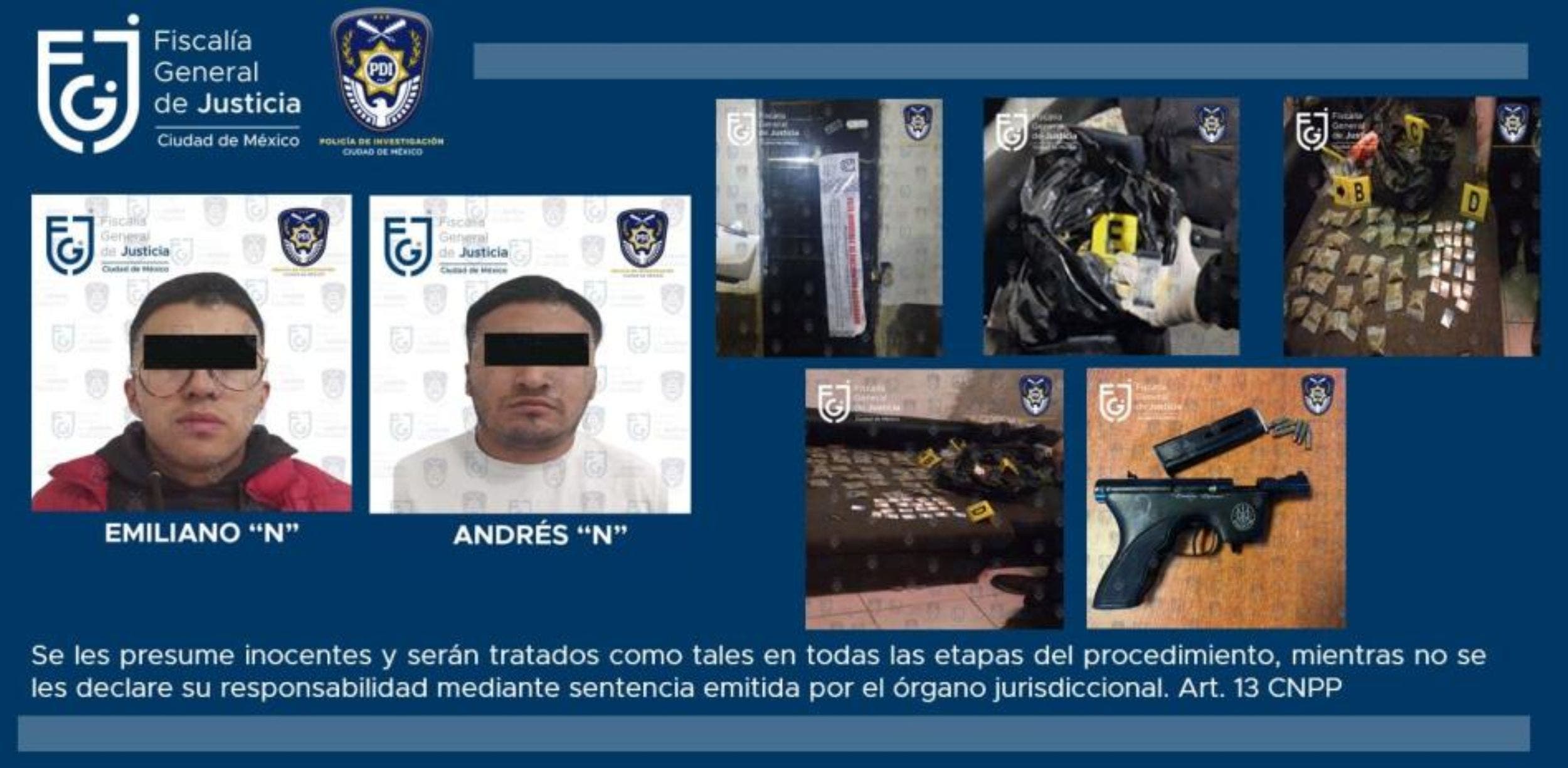 Después de estas labores, las viviendas, los aprehendidos y los indicios quedaron a disposición de la Fiscalía de Investigación del Delito de Narcomenudeo, la cual continuará con la integración de las carpetas de investigación iniciadas por el delito contra la salud en su modalidad de narcomenudeo.
