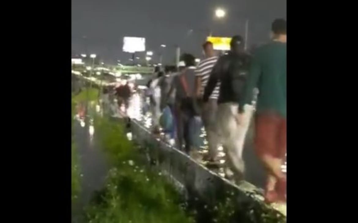 En videos de redes sociales, se observa el paso de los afectados con la operación parcial del Metro, ocasionada por las fuertes lluvias.