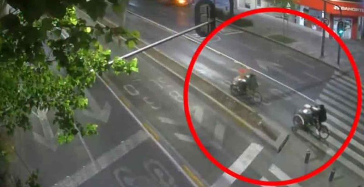 Ciudad de México.- Vía redes sociales, el periodista Carlos Jiménez dio a conocer que cámaras del C5 captaron el momento justo cuando un automovilista atropelló a dos vendedores de pan y café que acostumbran circular en las calles de la capital en sus triciclos.