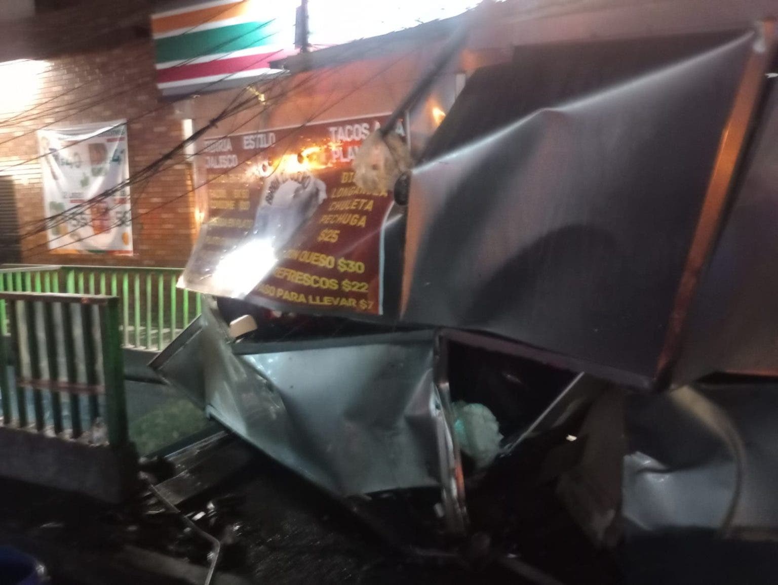 Además, se observan los daños en el vehículo, así como una joven herida, los puestos de comida en estado inservible, así como la detención de un sujeto.