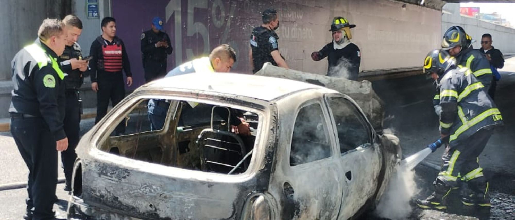 Equipos de emergencia laboraron para sofocar un incendio registrado en un auto que circulaba en Viaducto Miguel Alemán Valdés, Roma Sur, @AlcCuauhtemocMx. #TrabajandoJuntos pic.twitter.com/ejig87ZDkT