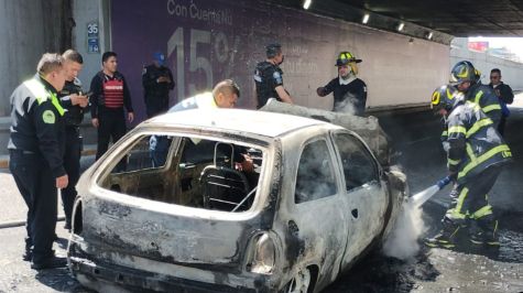 Un automóvil se incendió mientras circulaba sobre el Viaducto Miguel Alemán, a la altura de la alcaldía Benito Juárez.