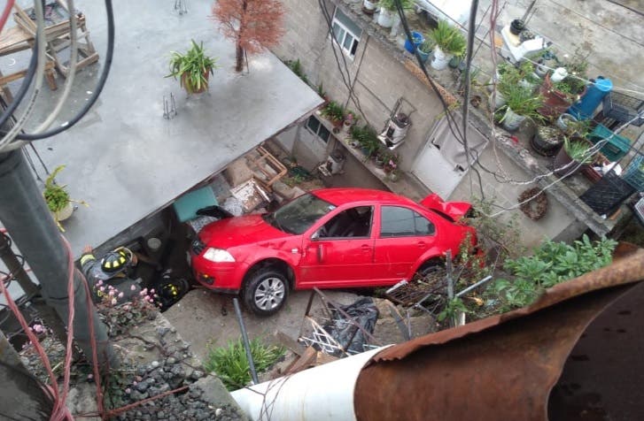 Automóvil cae al patio de una casa en Cuajimalpa