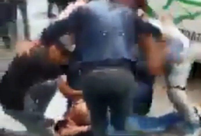 En la grabación se observa como golpean al presunto ladrón con ahínco; una usuaria le propina varias patadas en la cabeza.