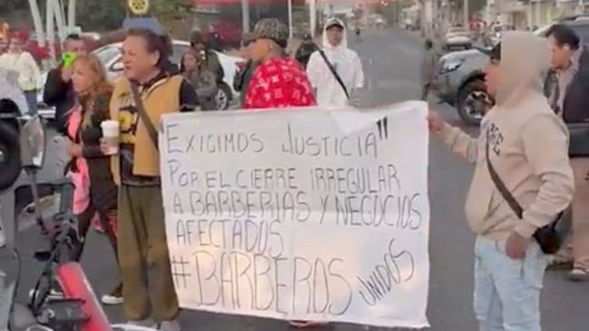 Ciudad de México.- Un grupo de barberos mantiene un bloqueo sobre la avenida Vía Morelos, a la altura de Santa Clara Coatitla, en protesta por el cierre de sus negocios durante un operativo de la Fiscalía del Estado de México.