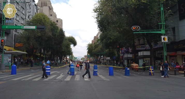 Elementos de la Secretaría de Seguridad Ciudadana (SSC) realizan los cortes pertinentes a la circulación sobre Eje Central Lázaro Cárdenas y desvían a los conductores. Como alternativas viales se sugiere utilizar Paseo de la Reforma.