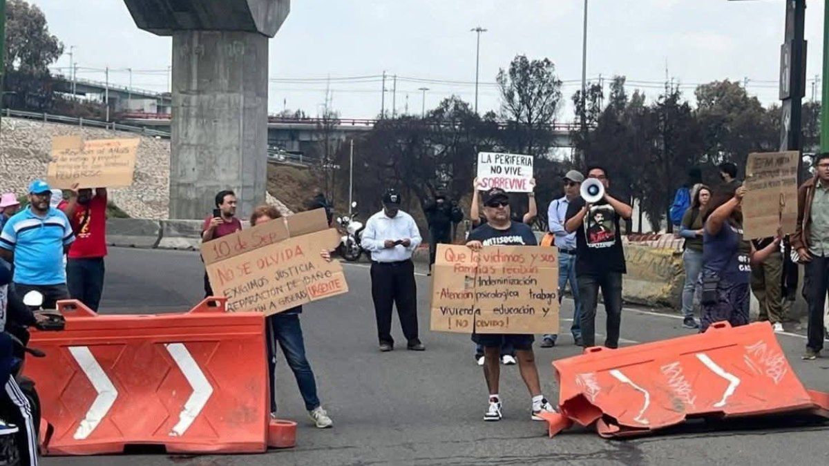 🔥 #Bloqueo | Familiares de las víctimas exigen justicia tras tragedia 🔥del 10 de septiembre en el Puente de la #Concordia, bloquean la carretera Los Reyes–Texcoco, a la altura de la incorporación a Calzada Ignacio Zaragoza.