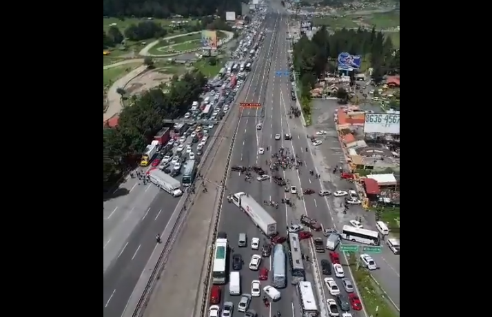 El C5 Estado de México también ha confirmado la situación de bloqueo, señalando que se extiende por más de 2 kilómetros y es llevado a cabo por un grupo de personas.