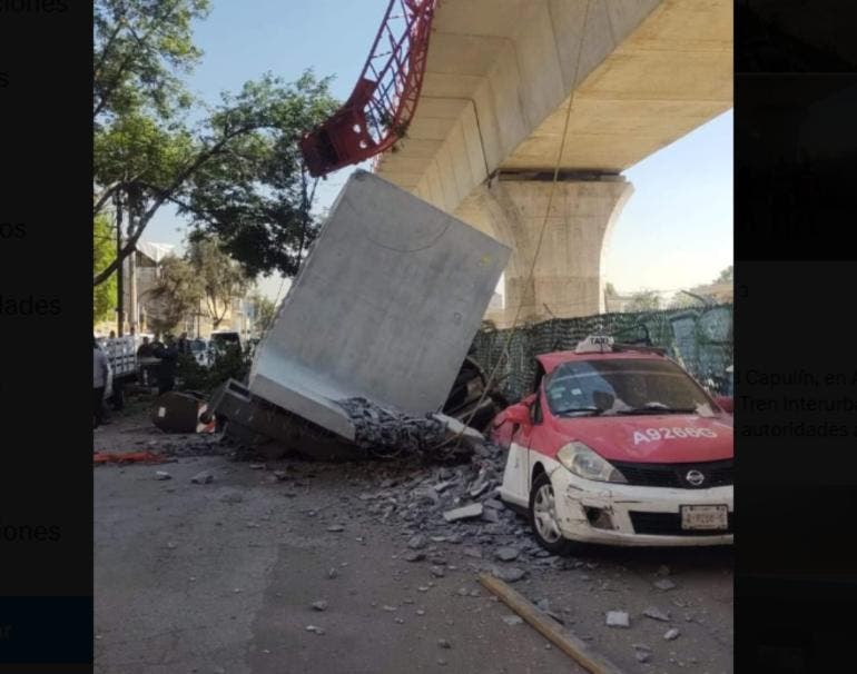 Cae estructura del Tren México-Toluca cerca de Observatorio