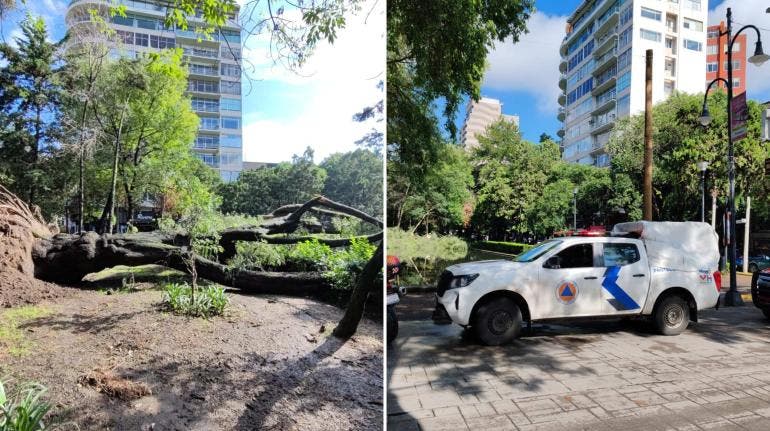 Caída de árbol de 30 metros en Parque Lincoln de Polanco moviliza a cuerpos de emergencia