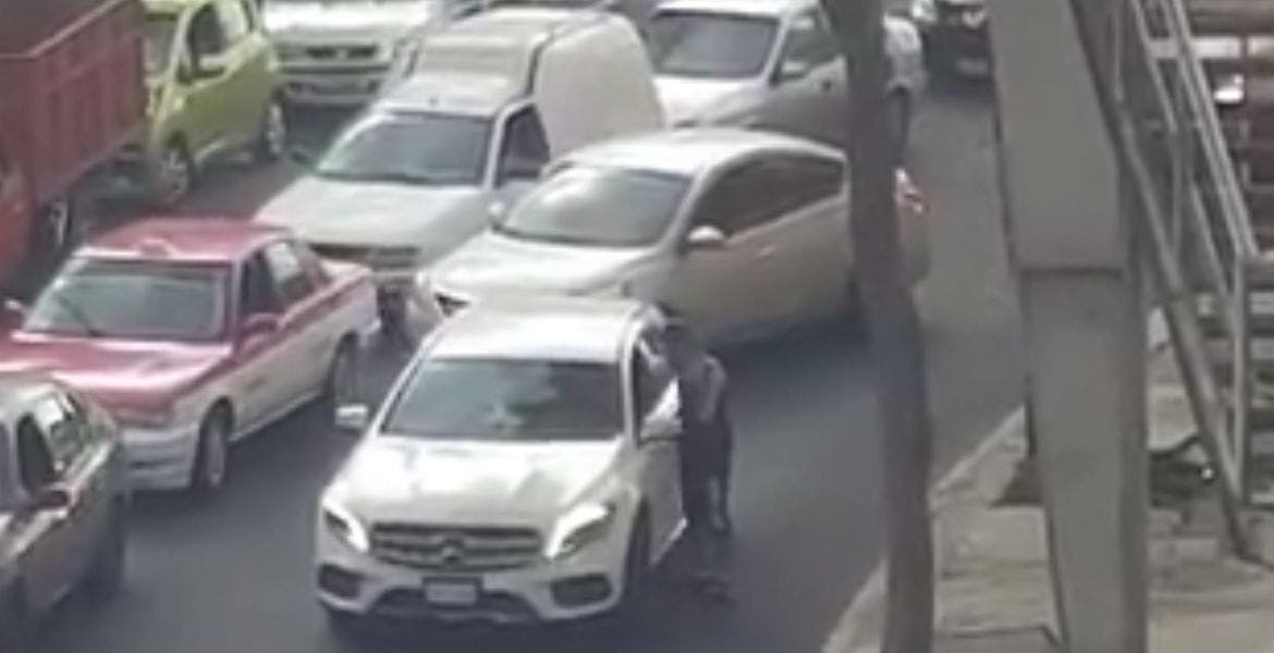 En redes sociales circula un video en el que se ve como dos hombres despojan de sus pertenencias a un conductor de una camioneta blanca de lujo, marca Mercedes Benz, en la colonia Cove.