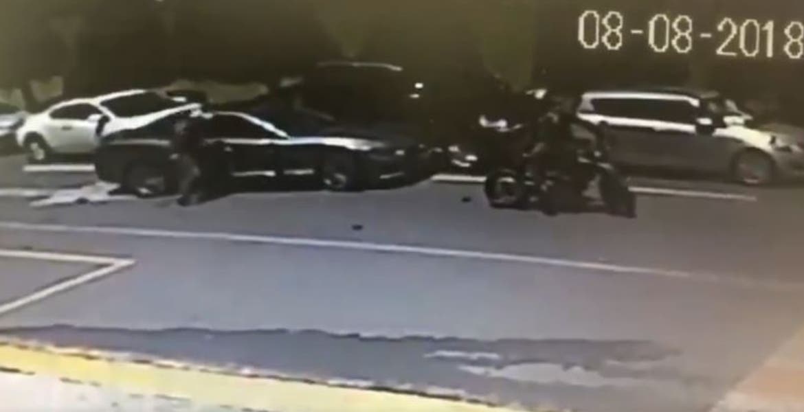 Entonces un sujeto forcejea para abrir la puerta del automóvil, cuando logra abrir la puerta, el ladrón toma algo del vehículo y escapa.