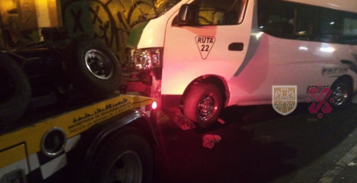 Con base en testigos que cita Excélsior, el chofer de la minivan con placas 622NZ008, de la Ruta 22, perdió el control de la unidad y se impactó contra un poste de concreto del alumbrado público.