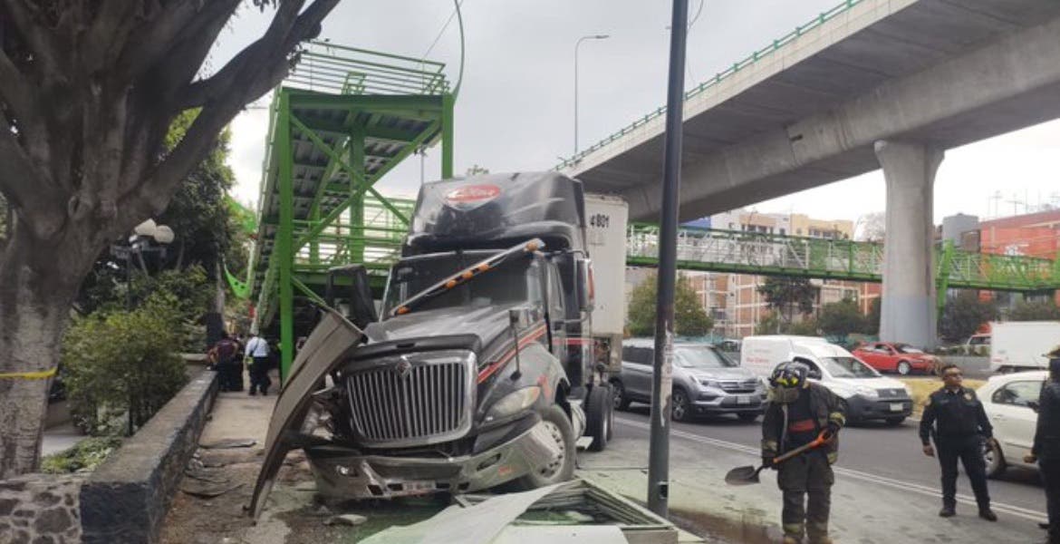 Choca tractocamión contra puente peatonal en Tlalpan