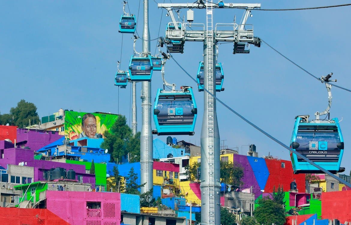 Compuesto por más de 300 cabinas de 10 plazas, el nuevo sistema de transporte por teleférico Cablebús 2 fue fabricado por la empresa Leitner en colaboración con Alfa Proveedores y Contratistas.