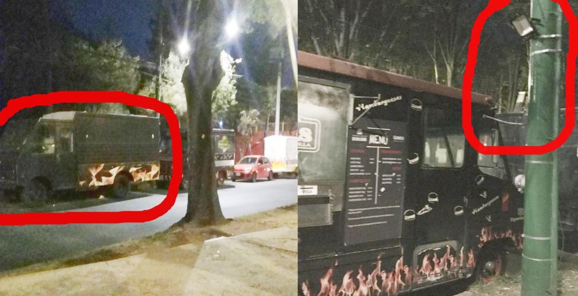 Además, según nos comentó el vecino, que pidio anonimato, los módulos los dejan en la noche ahí y no los mueven, en realidad son casetas de comida y no "Food truck” como quieren aparentar.