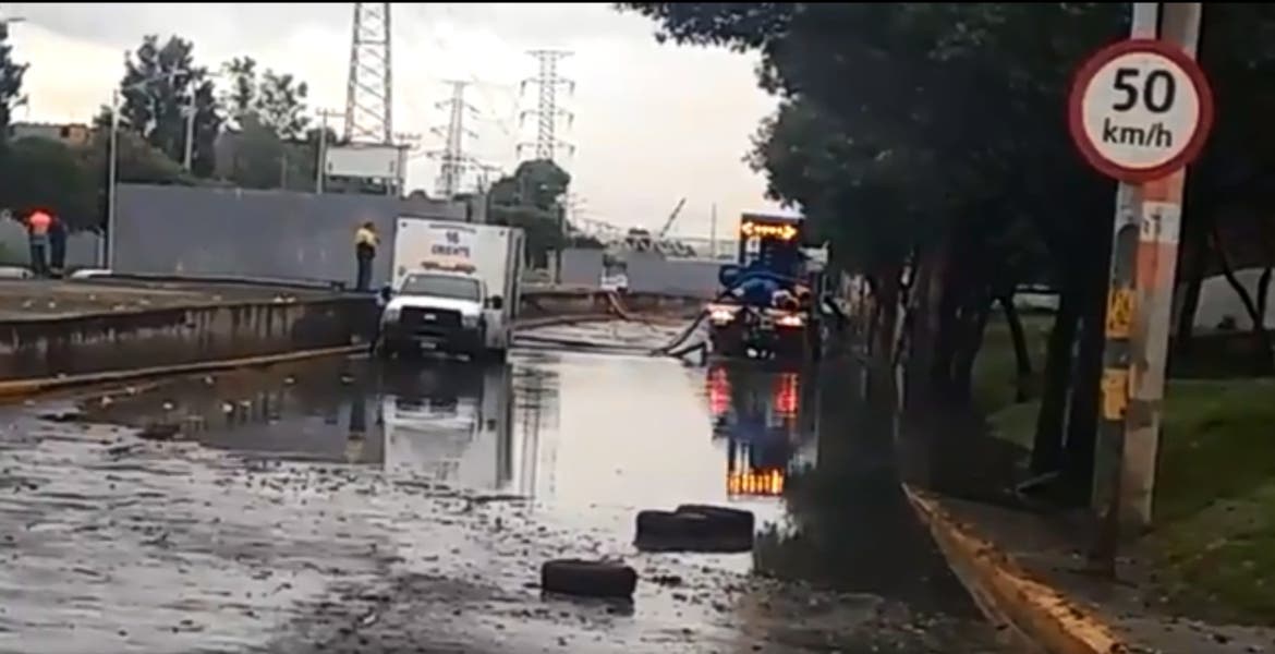 El Centro de Comando, Control, Cómputo, Comunicaciones y Contacto Ciudadano de la Ciudad de México (C5) informó que la vialidad presenta grandes encharcamientos, los cuales impiden el paso de los vehículos.