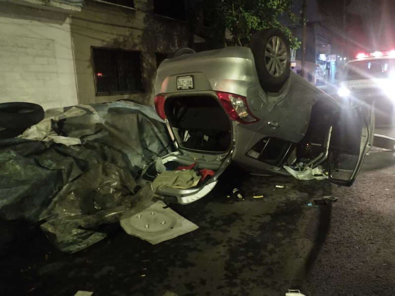 Contra vehículos y se vuelca en Azcapotzalco; conductor y pasajero huyen