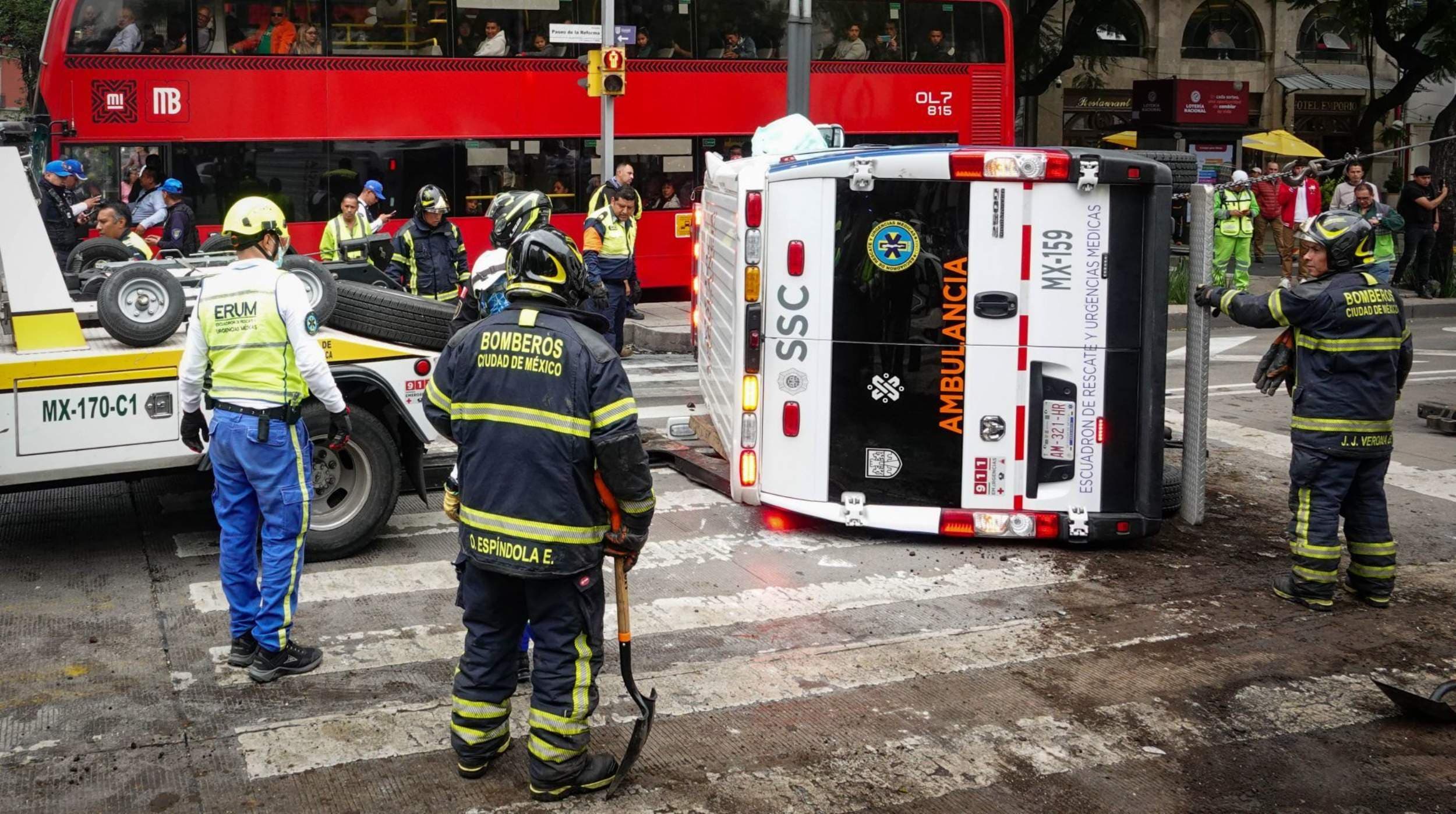 Cuatro heridos deja volcadura de ambulancia sobre Paseo de la Reforma