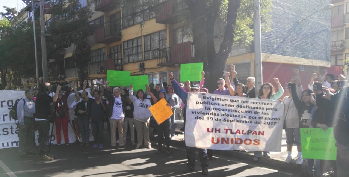 Los integrantes de la Asamblea de Vecinos del Multifamiliar Tlalpan y Damnificados Unidos de la Ciudad de México protestaron a la altura de la calle Álvaro Gálvez y Fuentes y la avenida Taxqueña, ante el incumplimiento de los acuerdos por parte de autoridades del Gobierno de la Ciudad de México.