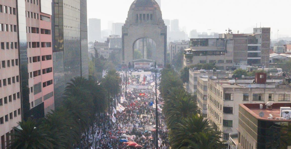 “Quiero hablar de algo más, aunque se molesten los consejeros del INE, porque no podemos olvidar que el desmantelamiento de la industria eléctrica y de la industria petrolera se dio con el fortalecimiento de los autoritarismos”, subrayó desde el templete instalado en el Monumento a la Revolución.