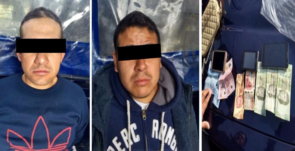 Operadores del Centro de Comando y Control (C-2) se percataron del delito y dieron aviso a los elementos de la Secretaría de Seguridad Pública, quienes minutos después arrestaron a dos hombres, de 27 y 35 años, con los objetos robados.