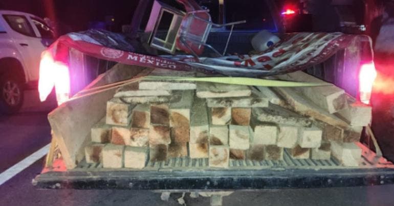 Durante la inspección, personal de la SSC y la PROFEPA identificó una camioneta de colores blanco y guinda con carga en la batea. Al solicitar al conductor la documentación correspondiente, se detectaron 34 polines y 10 tablas de madera verde motoaserrada sin papeles que acreditaran su legal procedencia, traslado, corte o posesión.