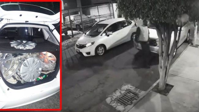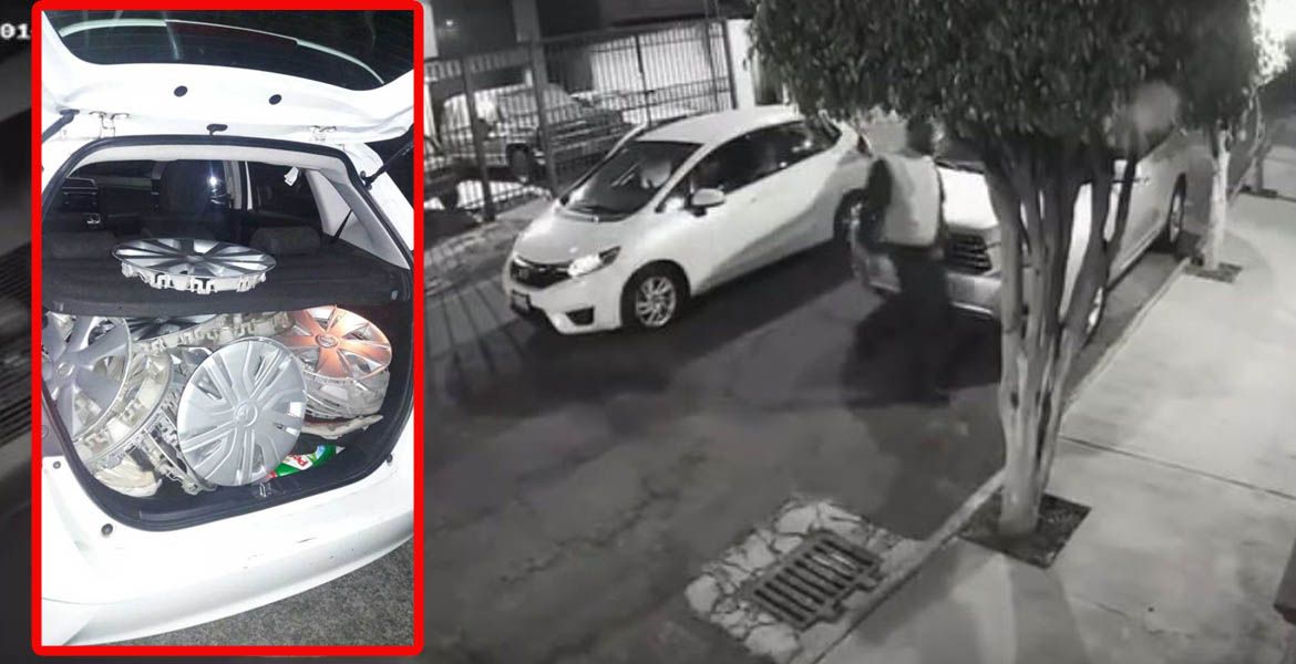 Al inspeccionar el Honda Fit, se detectó que en su interior había tapones de carros y más accesorios, por lo que procedieron a la detención de Humberto N., de 37 años de edad.
