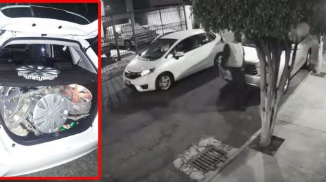 En las imágenes se puede observar como uno de los delincuentes baja de un automóvil para comenzar el robo de los espejos de de una camioneta estacionada en la vía pública, mientras su cómplice lo espera en el vehículo detenido a un lado.